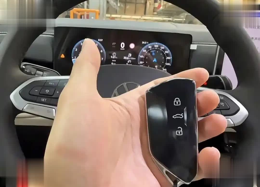 车尾部分,全新速腾L采用了流行的贯穿式尾灯组设计,搭配发光的大众品牌LOGO以及下方的“SAGITAR”英文标识,提升了车辆的视觉层次感和高级感。此次曝光的车钥匙仍保持大众家族式经典造型,但材质上呈现出哑光色泽,按键从上到下依次为锁车、开启后备厢和解锁功能。